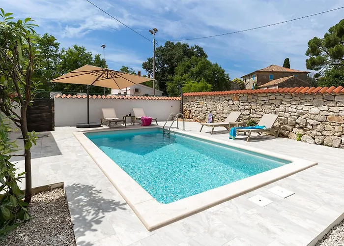 A konyha alapfelszerelését képezi a hűtő, sütő és mosógép. A szállás gyors elérhetőséget biztosít a Pula repülőtérhez, az út kocsival mindössze 42 perc. Ez a villa hozzáférést kínál a kinti úszómedencéhez.